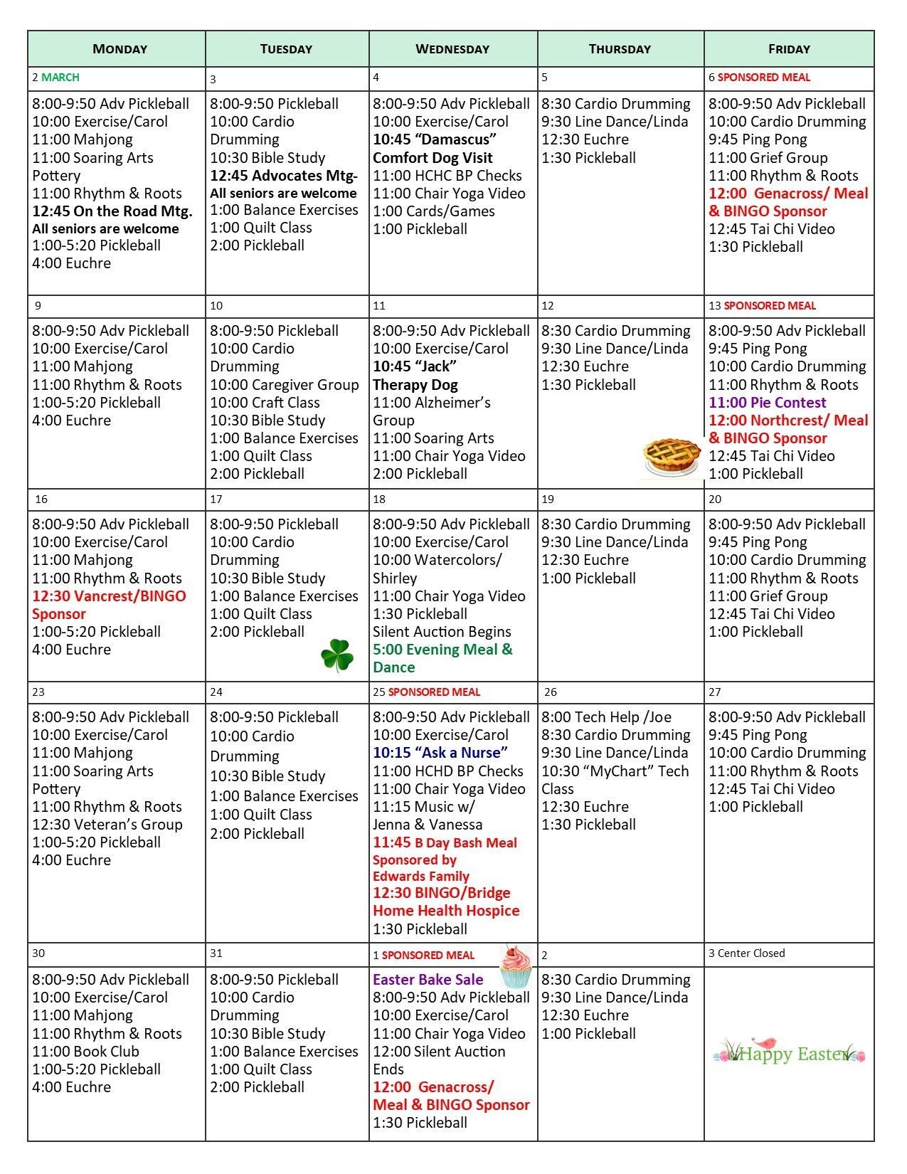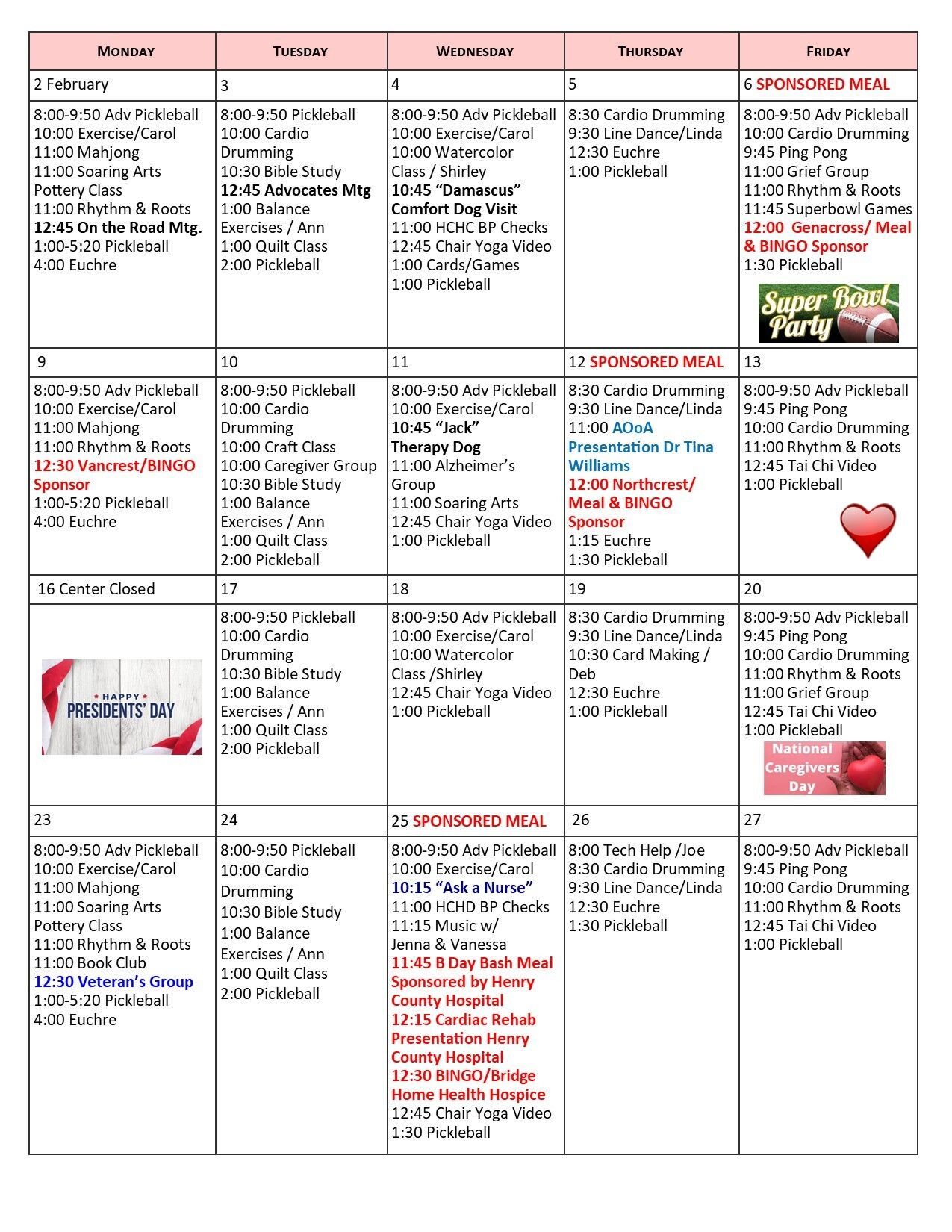 To always know what’s going on at HCSC, bookmark this page and check back for the latest programs and events. The Events Calendar for the current month is posted below. The weekly Menu and all Trips are posted on separate pages.